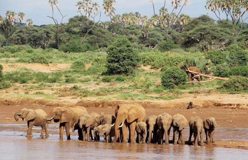 Day 02: Samburu. Full day spent in Samburu with early morning and afternoon game drives in Samburu Game Reserve, which covers 40 square miles (104 square kilometers). Ololokwe Table Mountain forms a dramatic backdrop to our game viewing. Samburu is also home to the third of Kenya's giraffe species - the rare Reticulated Giraffe (only found in the Northern parks). This is also where you see the blue-legged Somali Ostrich, the long-necked Gerenuk gazelle and the straight-horned Beisa Oryx antelope. Accommodation at Samburu Sopa Lodge or similar.
